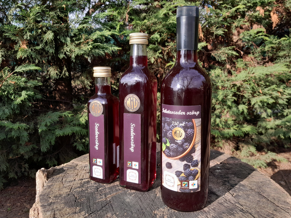Magas gyümölcslé-tartalmú feketeszeder gyümölcsszörp nyírfacukorral. Összetevők: feketeszederlé (min. 61%), nyírfacukor, víz, citromlé, citromsav.