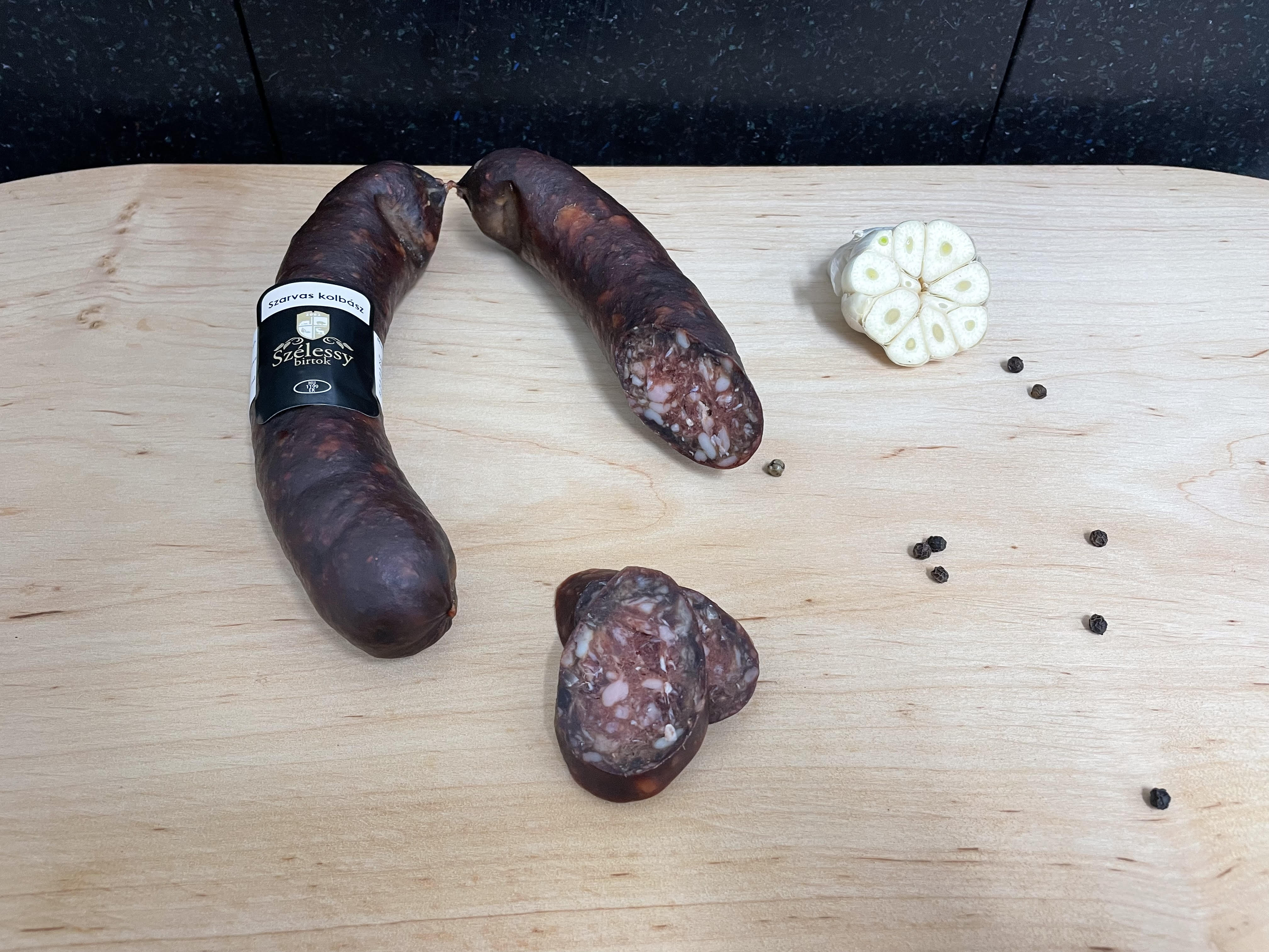 A szarvas kolbász a hagyományos technológia alapjait szem előtt tartva készül. Nirtit, adalékanyag és tartósítószermentes! Ellenőrzött forrásból származó, I. osztályú szarvas hús és saját tenyésztésű mangalica zsírszalonna felhasználásával készül. Kiszerelés: kb 25 dkg. Az ár a pontos súly függvényében változhat. Összetevők: szarvas hús, mangalica zsírszalonna, vákuum só, fűszerpaprika, fokhagyma granulátum, őrölt feketebors, őrölt kömény