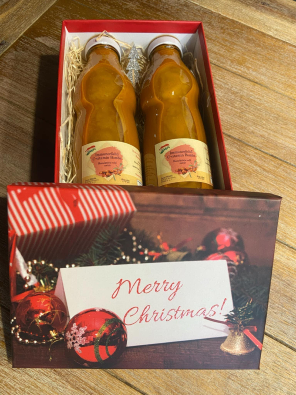 Karácsonyi ajándék csomag díszdobozban Az ajándék csomag tartalma: 2 X 500 ml homoktövis velő. A készlet erejéig kapható. A díszdoboz mintája eltérhet a képen láthatótol.