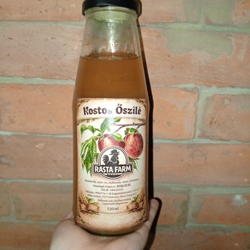 A nyár íze egy 720 ml üvegbe. Sűrű, bőven higitható vízzel. Benn a husa, hèja semmit nem veszek ki belőle, igy valódi rosttartalommal rendelkezik. Összetevők: paraszt barack , szűrt víz cukor, citrom sav.