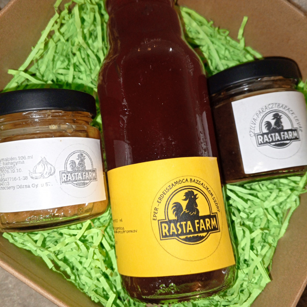 Tartalma: 300 ml eper-erdeiszamoca bazsalikom szörp (fehejillatu,citrom illatú, genovai,lilalevelu,Szent bazsalikom vegyesen) 106 ml sült fokhagyma krém bio napraforgó olajjal 106 ml paraszt barack-szilva lekvár.