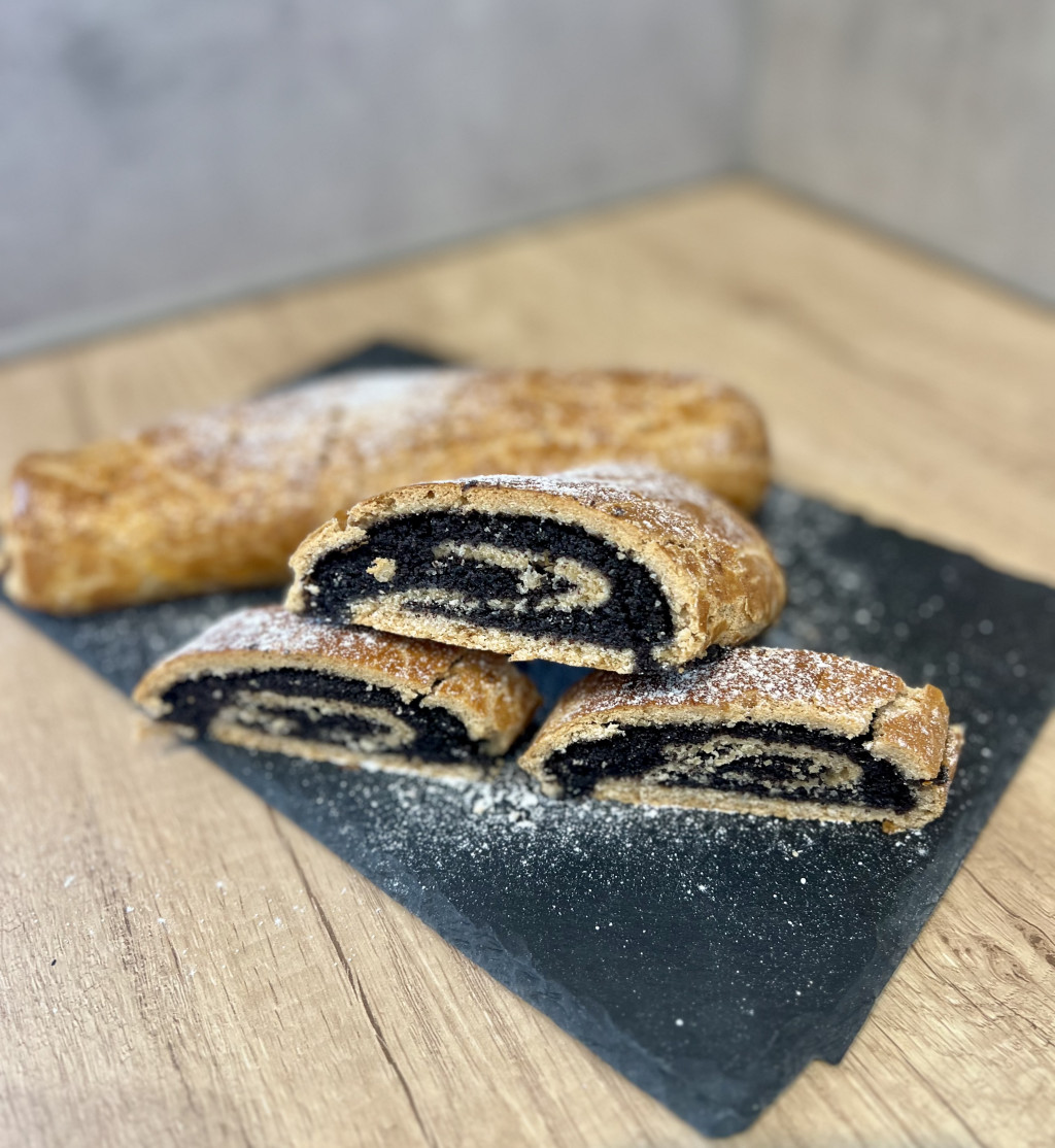 Saját készítésű Glutén mentes lisztkeverékből készítem, ami nem tartalmaz semmiféle adalékanyagot. Összetevők: Barna Rizsliszt, Tápióka keményítő, Cirok liszt, Útifűmaghéj, Vénusz margarin, Porcukor, Víz, Egész Tojás, Élesztő. Töltelék: Darát mák, Kristálycukor, Víz,Vaniliás cukor, Fahéj, Szerecsendió, Citromhéj, Naracshéj.
