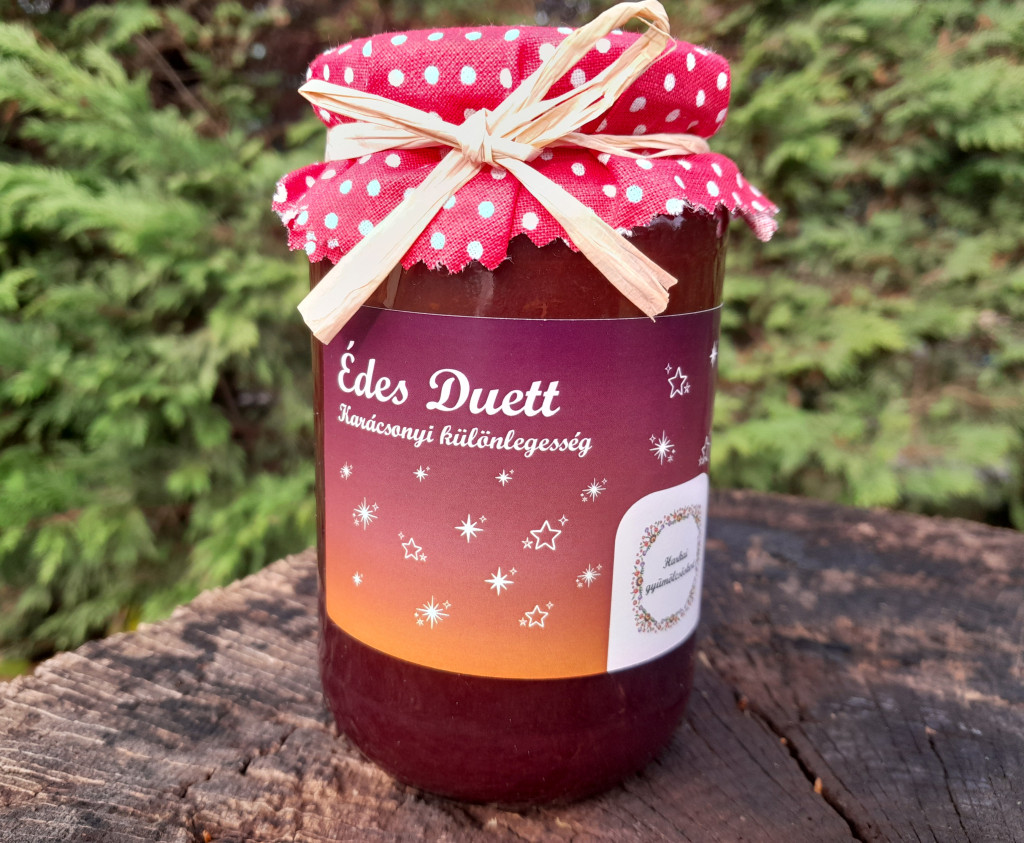 Karácsonyi lekvár-különlegesség, vegyes gyümölcs- (sárgabarack- és feketeszeder-) lekvár. Összetevők: sárgabarack, feketeszeder, répacukor, citromsav, citrompektin.