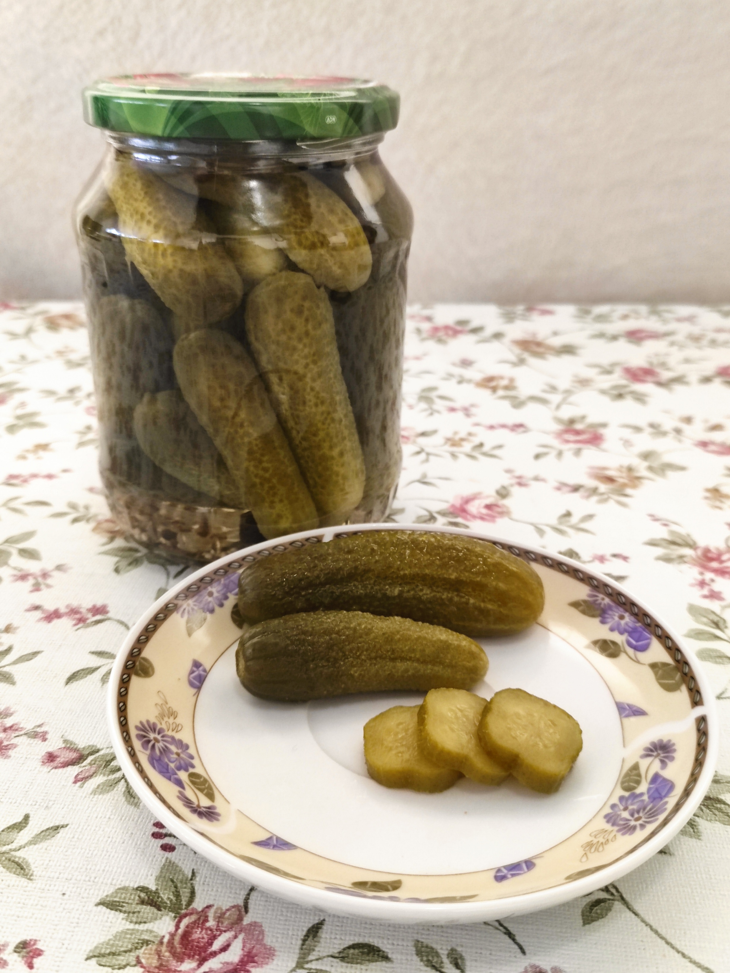 Finom,roppanós csemege uborka . Vegyszermentesen termesztett uborkából készült, tartósítószer nélküli termék. Uborkák mérete:6-9 cm Felöntőlé tartalma:ivóvíz,ecet ,só ,cukor, kapor, babérlevél, egész bors, koriander, mustármag, szegfübors. Súlya: 650g /350 g Hőkezeléssel tartósítva,ezért felbontás után célszerű hütőszekrényben tárolni. A kiürült üvegeket visszavárjuk!
