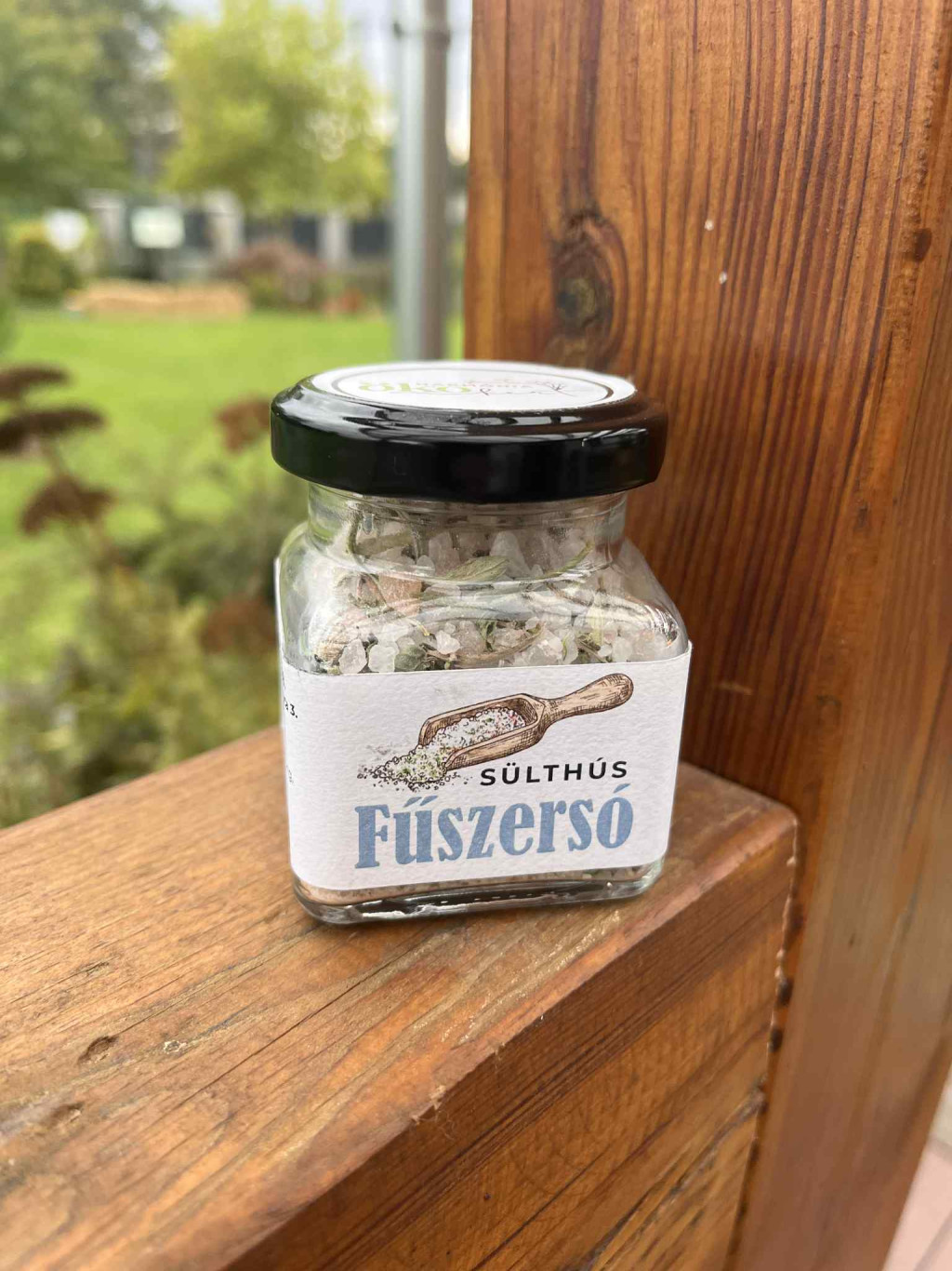 Saját, vegyszer-, és műtrágyamentes fűszernövényekből kevert fűszersó, ami kimondottan sülthúsok ízesítésére használható. Tartósítószermentes. Összetevők: himalájai só, tengeri durva só, rozmaring, kakukkfű, borsikafű. Az üveg tartalma 110 gramm.