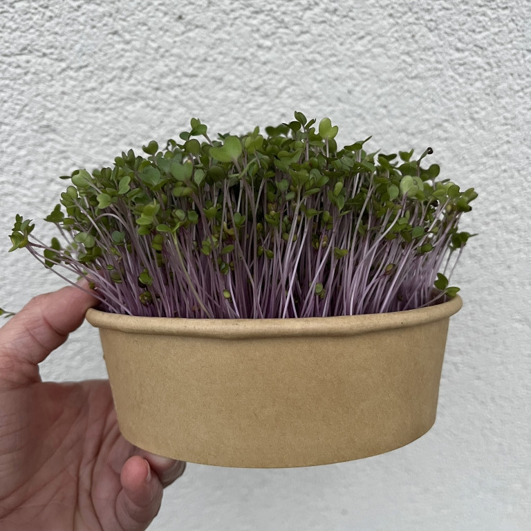 Mi is az a mikrozöld? A csírához hasonló, ám tovább nevelt növényi hajtások. Már termesztő közegben nőnek, esetemben kókuszrost, kenderrost vagy natúr biotőzeg. Körülbelül 7-14 nap alatt fejlődnek ki szüretelhető növénnyé, ekkor foygasztjuk őket.