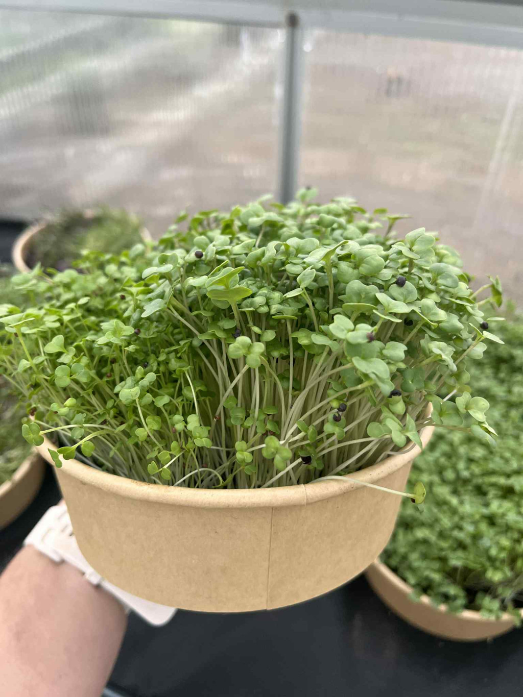 Mi is az a mikrozöld? A csírához hasonló, ám tovább nevelt növényi hajtások. Már termesztő közegben nőnek, esetemben kókuszrost, kenderrost vagy natúr biotőzeg. Körülbelül 7-14 nap alatt fejlődnek ki szüretelhető növénnyé, ekkor foygasztjuk őket.